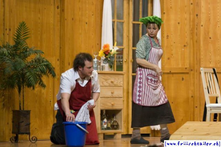 Toni Burri hat sich verschlafen. Er sollte eigentlich schon lange im Zug nach Bern sitzen, um dort an einer Sitzung des Bauernverbandes teilzunehmen. Seine Frau Theres möchte diesen Anlass dazu nutzen, ihren Mann für einige Zeit zu verlassen, um ihn so in die Knie zu zwingen, dass er sich von seinen vielen «Ämtli» und Vereinen trennt und sich mehr um sie kümmert. Als der Bruder Theres abholen will, Toni immer noch auf dem Hof ist, kommt es zu den ersten Komplikationen, denn Toni darf ja nichts Avon wissen, dass ihn seine Frau verlassen will. Dori, die Hausangestellte, eine mehr als «giftige» Person freut sich natürlich, nun das Zepter führen zu können. sie blüht geradezu auf um jeden zu tyrannisieren, der auf dem Hof anwesend ist. Der Nachbar, der die Situation dass Theres nicht mehr da ist, ausnutzen möchte, hat über Internet an zwei Damen geschrieben. Diese kommen nun am Wochenende auf den Hof, um ihren Märchenprinzen kennen zu lernen. Die zwei Internet-Damen haben aber die Rechnung ohne Dori gemacht. Da die beiden Damen nicht dem entsprechen, was sich der Nachbar vorgestellt hat, verleugnet er sich. Nun muss auch er unten durch, damit Dori den Schwindel nicht aufdeckt. Wer nicht nach ihrer Geige tanzt, wird heruntergehandelt wie ein «Schuelergoof». Ganz schlimm wir es, als Toni die Kellertreppe hinunterstürzt und auf fremde Hilfe angewiesen ist. Er ist heilfroh, dass Theres endlich wieder zurück kommt.