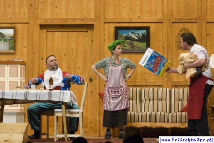 Toni Burri hat sich verschlafen. Er sollte eigentlich schon lange im Zug nach Bern sitzen, um dort an einer Sitzung des Bauernverbandes teilzunehmen. Seine Frau Theres möchte diesen Anlass dazu nutzen, ihren Mann für einige Zeit zu verlassen, um ihn so in die Knie zu zwingen, dass er sich von seinen vielen «Ämtli» und Vereinen trennt und sich mehr um sie kümmert. Als der Bruder Theres abholen will, Toni immer noch auf dem Hof ist, kommt es zu den ersten Komplikationen, denn Toni darf ja nichts Avon wissen, dass ihn seine Frau verlassen will. Dori, die Hausangestellte, eine mehr als «giftige» Person freut sich natürlich, nun das Zepter führen zu können. sie blüht geradezu auf um jeden zu tyrannisieren, der auf dem Hof anwesend ist. Der Nachbar, der die Situation dass Theres nicht mehr da ist, ausnutzen möchte, hat über Internet an zwei Damen geschrieben. Diese kommen nun am Wochenende auf den Hof, um ihren Märchenprinzen kennen zu lernen. Die zwei Internet-Damen haben aber die Rechnung ohne Dori gemacht. Da die beiden Damen nicht dem entsprechen, was sich der Nachbar vorgestellt hat, verleugnet er sich. Nun muss auch er unten durch, damit Dori den Schwindel nicht aufdeckt. Wer nicht nach ihrer Geige tanzt, wird heruntergehandelt wie ein «Schuelergoof». Ganz schlimm wir es, als Toni die Kellertreppe hinunterstürzt und auf fremde Hilfe angewiesen ist. Er ist heilfroh, dass Theres endlich wieder zurück kommt.