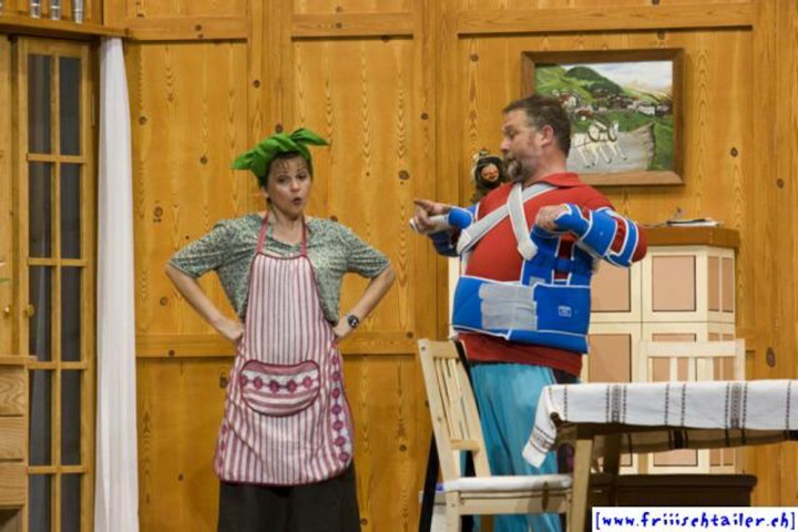 Toni Burri hat sich verschlafen. Er sollte eigentlich schon lange im Zug nach Bern sitzen, um dort an einer Sitzung des Bauernverbandes teilzunehmen. Seine Frau Theres möchte diesen Anlass dazu nutzen, ihren Mann für einige Zeit zu verlassen, um ihn so in die Knie zu zwingen, dass er sich von seinen vielen «Ämtli» und Vereinen trennt und sich mehr um sie kümmert. Als der Bruder Theres abholen will, Toni immer noch auf dem Hof ist, kommt es zu den ersten Komplikationen, denn Toni darf ja nichts Avon wissen, dass ihn seine Frau verlassen will. Dori, die Hausangestellte, eine mehr als «giftige» Person freut sich natürlich, nun das Zepter führen zu können. sie blüht geradezu auf um jeden zu tyrannisieren, der auf dem Hof anwesend ist. Der Nachbar, der die Situation dass Theres nicht mehr da ist, ausnutzen möchte, hat über Internet an zwei Damen geschrieben. Diese kommen nun am Wochenende auf den Hof, um ihren Märchenprinzen kennen zu lernen. Die zwei Internet-Damen haben aber die Rechnung ohne Dori gemacht. Da die beiden Damen nicht dem entsprechen, was sich der Nachbar vorgestellt hat, verleugnet er sich. Nun muss auch er unten durch, damit Dori den Schwindel nicht aufdeckt. Wer nicht nach ihrer Geige tanzt, wird heruntergehandelt wie ein «Schuelergoof». Ganz schlimm wir es, als Toni die Kellertreppe hinunterstürzt und auf fremde Hilfe angewiesen ist. Er ist heilfroh, dass Theres endlich wieder zurück kommt.