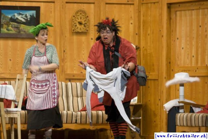 Toni Burri hat sich verschlafen. Er sollte eigentlich schon lange im Zug nach Bern sitzen, um dort an einer Sitzung des Bauernverbandes teilzunehmen. Seine Frau Theres möchte diesen Anlass dazu nutzen, ihren Mann für einige Zeit zu verlassen, um ihn so in die Knie zu zwingen, dass er sich von seinen vielen «Ämtli» und Vereinen trennt und sich mehr um sie kümmert. Als der Bruder Theres abholen will, Toni immer noch auf dem Hof ist, kommt es zu den ersten Komplikationen, denn Toni darf ja nichts Avon wissen, dass ihn seine Frau verlassen will. Dori, die Hausangestellte, eine mehr als «giftige» Person freut sich natürlich, nun das Zepter führen zu können. sie blüht geradezu auf um jeden zu tyrannisieren, der auf dem Hof anwesend ist. Der Nachbar, der die Situation dass Theres nicht mehr da ist, ausnutzen möchte, hat über Internet an zwei Damen geschrieben. Diese kommen nun am Wochenende auf den Hof, um ihren Märchenprinzen kennen zu lernen. Die zwei Internet-Damen haben aber die Rechnung ohne Dori gemacht. Da die beiden Damen nicht dem entsprechen, was sich der Nachbar vorgestellt hat, verleugnet er sich. Nun muss auch er unten durch, damit Dori den Schwindel nicht aufdeckt. Wer nicht nach ihrer Geige tanzt, wird heruntergehandelt wie ein «Schuelergoof». Ganz schlimm wir es, als Toni die Kellertreppe hinunterstürzt und auf fremde Hilfe angewiesen ist. Er ist heilfroh, dass Theres endlich wieder zurück kommt.