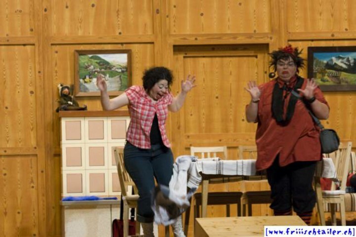 Toni Burri hat sich verschlafen. Er sollte eigentlich schon lange im Zug nach Bern sitzen, um dort an einer Sitzung des Bauernverbandes teilzunehmen. Seine Frau Theres möchte diesen Anlass dazu nutzen, ihren Mann für einige Zeit zu verlassen, um ihn so in die Knie zu zwingen, dass er sich von seinen vielen «Ämtli» und Vereinen trennt und sich mehr um sie kümmert. Als der Bruder Theres abholen will, Toni immer noch auf dem Hof ist, kommt es zu den ersten Komplikationen, denn Toni darf ja nichts Avon wissen, dass ihn seine Frau verlassen will. Dori, die Hausangestellte, eine mehr als «giftige» Person freut sich natürlich, nun das Zepter führen zu können. sie blüht geradezu auf um jeden zu tyrannisieren, der auf dem Hof anwesend ist. Der Nachbar, der die Situation dass Theres nicht mehr da ist, ausnutzen möchte, hat über Internet an zwei Damen geschrieben. Diese kommen nun am Wochenende auf den Hof, um ihren Märchenprinzen kennen zu lernen. Die zwei Internet-Damen haben aber die Rechnung ohne Dori gemacht. Da die beiden Damen nicht dem entsprechen, was sich der Nachbar vorgestellt hat, verleugnet er sich. Nun muss auch er unten durch, damit Dori den Schwindel nicht aufdeckt. Wer nicht nach ihrer Geige tanzt, wird heruntergehandelt wie ein «Schuelergoof». Ganz schlimm wir es, als Toni die Kellertreppe hinunterstürzt und auf fremde Hilfe angewiesen ist. Er ist heilfroh, dass Theres endlich wieder zurück kommt.