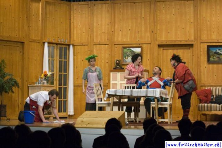 Toni Burri hat sich verschlafen. Er sollte eigentlich schon lange im Zug nach Bern sitzen, um dort an einer Sitzung des Bauernverbandes teilzunehmen. Seine Frau Theres möchte diesen Anlass dazu nutzen, ihren Mann für einige Zeit zu verlassen, um ihn so in die Knie zu zwingen, dass er sich von seinen vielen «Ämtli» und Vereinen trennt und sich mehr um sie kümmert. Als der Bruder Theres abholen will, Toni immer noch auf dem Hof ist, kommt es zu den ersten Komplikationen, denn Toni darf ja nichts Avon wissen, dass ihn seine Frau verlassen will. Dori, die Hausangestellte, eine mehr als «giftige» Person freut sich natürlich, nun das Zepter führen zu können. sie blüht geradezu auf um jeden zu tyrannisieren, der auf dem Hof anwesend ist. Der Nachbar, der die Situation dass Theres nicht mehr da ist, ausnutzen möchte, hat über Internet an zwei Damen geschrieben. Diese kommen nun am Wochenende auf den Hof, um ihren Märchenprinzen kennen zu lernen. Die zwei Internet-Damen haben aber die Rechnung ohne Dori gemacht. Da die beiden Damen nicht dem entsprechen, was sich der Nachbar vorgestellt hat, verleugnet er sich. Nun muss auch er unten durch, damit Dori den Schwindel nicht aufdeckt. Wer nicht nach ihrer Geige tanzt, wird heruntergehandelt wie ein «Schuelergoof». Ganz schlimm wir es, als Toni die Kellertreppe hinunterstürzt und auf fremde Hilfe angewiesen ist. Er ist heilfroh, dass Theres endlich wieder zurück kommt.
