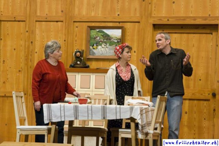 Toni Burri hat sich verschlafen. Er sollte eigentlich schon lange im Zug nach Bern sitzen, um dort an einer Sitzung des Bauernverbandes teilzunehmen. Seine Frau Theres möchte diesen Anlass dazu nutzen, ihren Mann für einige Zeit zu verlassen, um ihn so in die Knie zu zwingen, dass er sich von seinen vielen «Ämtli» und Vereinen trennt und sich mehr um sie kümmert. Als der Bruder Theres abholen will, Toni immer noch auf dem Hof ist, kommt es zu den ersten Komplikationen, denn Toni darf ja nichts Avon wissen, dass ihn seine Frau verlassen will. Dori, die Hausangestellte, eine mehr als «giftige» Person freut sich natürlich, nun das Zepter führen zu können. sie blüht geradezu auf um jeden zu tyrannisieren, der auf dem Hof anwesend ist. Der Nachbar, der die Situation dass Theres nicht mehr da ist, ausnutzen möchte, hat über Internet an zwei Damen geschrieben. Diese kommen nun am Wochenende auf den Hof, um ihren Märchenprinzen kennen zu lernen. Die zwei Internet-Damen haben aber die Rechnung ohne Dori gemacht. Da die beiden Damen nicht dem entsprechen, was sich der Nachbar vorgestellt hat, verleugnet er sich. Nun muss auch er unten durch, damit Dori den Schwindel nicht aufdeckt. Wer nicht nach ihrer Geige tanzt, wird heruntergehandelt wie ein «Schuelergoof». Ganz schlimm wir es, als Toni die Kellertreppe hinunterstürzt und auf fremde Hilfe angewiesen ist. Er ist heilfroh, dass Theres endlich wieder zurück kommt.