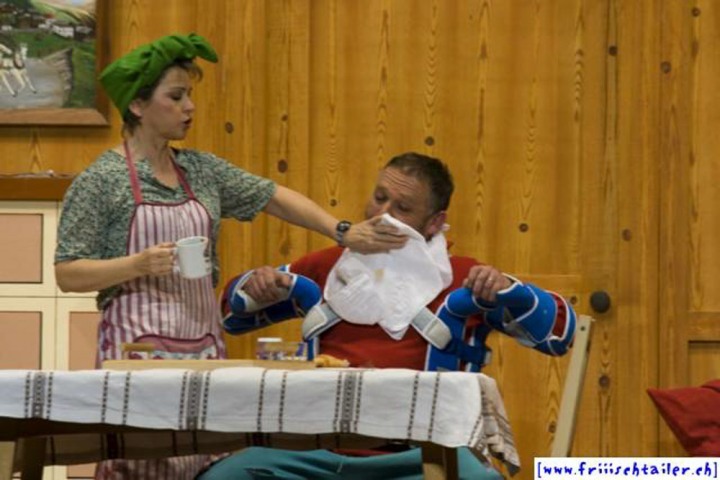 Toni Burri hat sich verschlafen. Er sollte eigentlich schon lange im Zug nach Bern sitzen, um dort an einer Sitzung des Bauernverbandes teilzunehmen. Seine Frau Theres möchte diesen Anlass dazu nutzen, ihren Mann für einige Zeit zu verlassen, um ihn so in die Knie zu zwingen, dass er sich von seinen vielen «Ämtli» und Vereinen trennt und sich mehr um sie kümmert. Als der Bruder Theres abholen will, Toni immer noch auf dem Hof ist, kommt es zu den ersten Komplikationen, denn Toni darf ja nichts Avon wissen, dass ihn seine Frau verlassen will. Dori, die Hausangestellte, eine mehr als «giftige» Person freut sich natürlich, nun das Zepter führen zu können. sie blüht geradezu auf um jeden zu tyrannisieren, der auf dem Hof anwesend ist. Der Nachbar, der die Situation dass Theres nicht mehr da ist, ausnutzen möchte, hat über Internet an zwei Damen geschrieben. Diese kommen nun am Wochenende auf den Hof, um ihren Märchenprinzen kennen zu lernen. Die zwei Internet-Damen haben aber die Rechnung ohne Dori gemacht. Da die beiden Damen nicht dem entsprechen, was sich der Nachbar vorgestellt hat, verleugnet er sich. Nun muss auch er unten durch, damit Dori den Schwindel nicht aufdeckt. Wer nicht nach ihrer Geige tanzt, wird heruntergehandelt wie ein «Schuelergoof». Ganz schlimm wir es, als Toni die Kellertreppe hinunterstürzt und auf fremde Hilfe angewiesen ist. Er ist heilfroh, dass Theres endlich wieder zurück kommt.