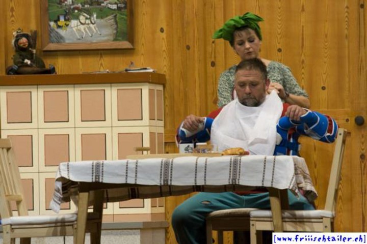 Toni Burri hat sich verschlafen. Er sollte eigentlich schon lange im Zug nach Bern sitzen, um dort an einer Sitzung des Bauernverbandes teilzunehmen. Seine Frau Theres möchte diesen Anlass dazu nutzen, ihren Mann für einige Zeit zu verlassen, um ihn so in die Knie zu zwingen, dass er sich von seinen vielen «Ämtli» und Vereinen trennt und sich mehr um sie kümmert. Als der Bruder Theres abholen will, Toni immer noch auf dem Hof ist, kommt es zu den ersten Komplikationen, denn Toni darf ja nichts Avon wissen, dass ihn seine Frau verlassen will. Dori, die Hausangestellte, eine mehr als «giftige» Person freut sich natürlich, nun das Zepter führen zu können. sie blüht geradezu auf um jeden zu tyrannisieren, der auf dem Hof anwesend ist. Der Nachbar, der die Situation dass Theres nicht mehr da ist, ausnutzen möchte, hat über Internet an zwei Damen geschrieben. Diese kommen nun am Wochenende auf den Hof, um ihren Märchenprinzen kennen zu lernen. Die zwei Internet-Damen haben aber die Rechnung ohne Dori gemacht. Da die beiden Damen nicht dem entsprechen, was sich der Nachbar vorgestellt hat, verleugnet er sich. Nun muss auch er unten durch, damit Dori den Schwindel nicht aufdeckt. Wer nicht nach ihrer Geige tanzt, wird heruntergehandelt wie ein «Schuelergoof». Ganz schlimm wir es, als Toni die Kellertreppe hinunterstürzt und auf fremde Hilfe angewiesen ist. Er ist heilfroh, dass Theres endlich wieder zurück kommt.