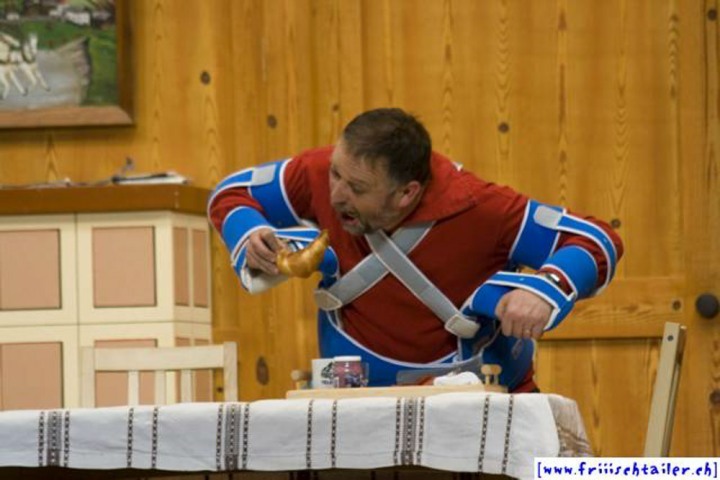 Toni Burri hat sich verschlafen. Er sollte eigentlich schon lange im Zug nach Bern sitzen, um dort an einer Sitzung des Bauernverbandes teilzunehmen. Seine Frau Theres möchte diesen Anlass dazu nutzen, ihren Mann für einige Zeit zu verlassen, um ihn so in die Knie zu zwingen, dass er sich von seinen vielen «Ämtli» und Vereinen trennt und sich mehr um sie kümmert. Als der Bruder Theres abholen will, Toni immer noch auf dem Hof ist, kommt es zu den ersten Komplikationen, denn Toni darf ja nichts Avon wissen, dass ihn seine Frau verlassen will. Dori, die Hausangestellte, eine mehr als «giftige» Person freut sich natürlich, nun das Zepter führen zu können. sie blüht geradezu auf um jeden zu tyrannisieren, der auf dem Hof anwesend ist. Der Nachbar, der die Situation dass Theres nicht mehr da ist, ausnutzen möchte, hat über Internet an zwei Damen geschrieben. Diese kommen nun am Wochenende auf den Hof, um ihren Märchenprinzen kennen zu lernen. Die zwei Internet-Damen haben aber die Rechnung ohne Dori gemacht. Da die beiden Damen nicht dem entsprechen, was sich der Nachbar vorgestellt hat, verleugnet er sich. Nun muss auch er unten durch, damit Dori den Schwindel nicht aufdeckt. Wer nicht nach ihrer Geige tanzt, wird heruntergehandelt wie ein «Schuelergoof». Ganz schlimm wir es, als Toni die Kellertreppe hinunterstürzt und auf fremde Hilfe angewiesen ist. Er ist heilfroh, dass Theres endlich wieder zurück kommt.