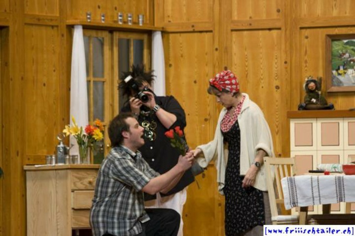 Toni Burri hat sich verschlafen. Er sollte eigentlich schon lange im Zug nach Bern sitzen, um dort an einer Sitzung des Bauernverbandes teilzunehmen. Seine Frau Theres möchte diesen Anlass dazu nutzen, ihren Mann für einige Zeit zu verlassen, um ihn so in die Knie zu zwingen, dass er sich von seinen vielen «Ämtli» und Vereinen trennt und sich mehr um sie kümmert. Als der Bruder Theres abholen will, Toni immer noch auf dem Hof ist, kommt es zu den ersten Komplikationen, denn Toni darf ja nichts Avon wissen, dass ihn seine Frau verlassen will. Dori, die Hausangestellte, eine mehr als «giftige» Person freut sich natürlich, nun das Zepter führen zu können. sie blüht geradezu auf um jeden zu tyrannisieren, der auf dem Hof anwesend ist. Der Nachbar, der die Situation dass Theres nicht mehr da ist, ausnutzen möchte, hat über Internet an zwei Damen geschrieben. Diese kommen nun am Wochenende auf den Hof, um ihren Märchenprinzen kennen zu lernen. Die zwei Internet-Damen haben aber die Rechnung ohne Dori gemacht. Da die beiden Damen nicht dem entsprechen, was sich der Nachbar vorgestellt hat, verleugnet er sich. Nun muss auch er unten durch, damit Dori den Schwindel nicht aufdeckt. Wer nicht nach ihrer Geige tanzt, wird heruntergehandelt wie ein «Schuelergoof». Ganz schlimm wir es, als Toni die Kellertreppe hinunterstürzt und auf fremde Hilfe angewiesen ist. Er ist heilfroh, dass Theres endlich wieder zurück kommt.