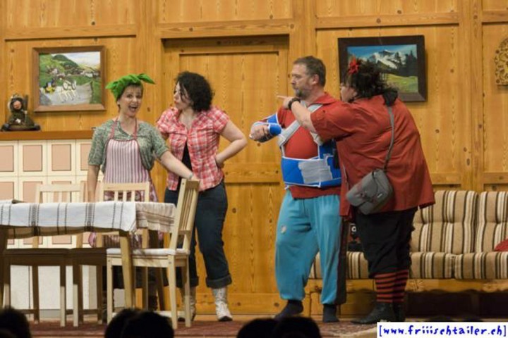 Toni Burri hat sich verschlafen. Er sollte eigentlich schon lange im Zug nach Bern sitzen, um dort an einer Sitzung des Bauernverbandes teilzunehmen. Seine Frau Theres möchte diesen Anlass dazu nutzen, ihren Mann für einige Zeit zu verlassen, um ihn so in die Knie zu zwingen, dass er sich von seinen vielen «Ämtli» und Vereinen trennt und sich mehr um sie kümmert. Als der Bruder Theres abholen will, Toni immer noch auf dem Hof ist, kommt es zu den ersten Komplikationen, denn Toni darf ja nichts Avon wissen, dass ihn seine Frau verlassen will. Dori, die Hausangestellte, eine mehr als «giftige» Person freut sich natürlich, nun das Zepter führen zu können. sie blüht geradezu auf um jeden zu tyrannisieren, der auf dem Hof anwesend ist. Der Nachbar, der die Situation dass Theres nicht mehr da ist, ausnutzen möchte, hat über Internet an zwei Damen geschrieben. Diese kommen nun am Wochenende auf den Hof, um ihren Märchenprinzen kennen zu lernen. Die zwei Internet-Damen haben aber die Rechnung ohne Dori gemacht. Da die beiden Damen nicht dem entsprechen, was sich der Nachbar vorgestellt hat, verleugnet er sich. Nun muss auch er unten durch, damit Dori den Schwindel nicht aufdeckt. Wer nicht nach ihrer Geige tanzt, wird heruntergehandelt wie ein «Schuelergoof». Ganz schlimm wir es, als Toni die Kellertreppe hinunterstürzt und auf fremde Hilfe angewiesen ist. Er ist heilfroh, dass Theres endlich wieder zurück kommt.