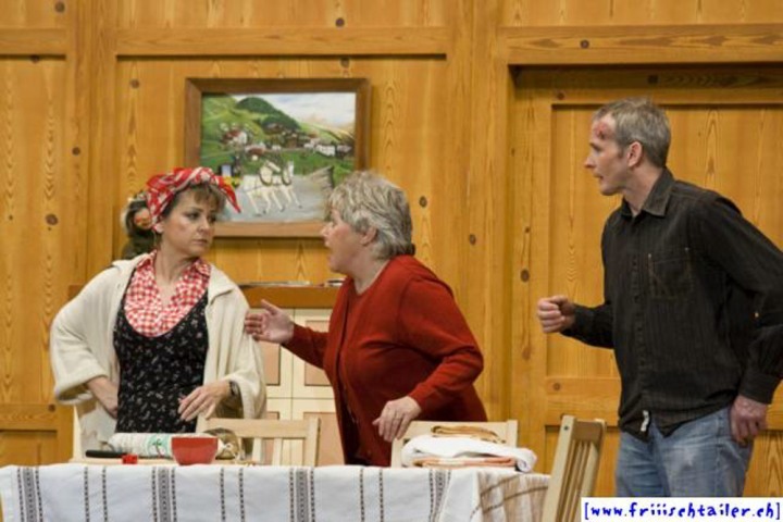 Toni Burri hat sich verschlafen. Er sollte eigentlich schon lange im Zug nach Bern sitzen, um dort an einer Sitzung des Bauernverbandes teilzunehmen. Seine Frau Theres möchte diesen Anlass dazu nutzen, ihren Mann für einige Zeit zu verlassen, um ihn so in die Knie zu zwingen, dass er sich von seinen vielen «Ämtli» und Vereinen trennt und sich mehr um sie kümmert. Als der Bruder Theres abholen will, Toni immer noch auf dem Hof ist, kommt es zu den ersten Komplikationen, denn Toni darf ja nichts Avon wissen, dass ihn seine Frau verlassen will. Dori, die Hausangestellte, eine mehr als «giftige» Person freut sich natürlich, nun das Zepter führen zu können. sie blüht geradezu auf um jeden zu tyrannisieren, der auf dem Hof anwesend ist. Der Nachbar, der die Situation dass Theres nicht mehr da ist, ausnutzen möchte, hat über Internet an zwei Damen geschrieben. Diese kommen nun am Wochenende auf den Hof, um ihren Märchenprinzen kennen zu lernen. Die zwei Internet-Damen haben aber die Rechnung ohne Dori gemacht. Da die beiden Damen nicht dem entsprechen, was sich der Nachbar vorgestellt hat, verleugnet er sich. Nun muss auch er unten durch, damit Dori den Schwindel nicht aufdeckt. Wer nicht nach ihrer Geige tanzt, wird heruntergehandelt wie ein «Schuelergoof». Ganz schlimm wir es, als Toni die Kellertreppe hinunterstürzt und auf fremde Hilfe angewiesen ist. Er ist heilfroh, dass Theres endlich wieder zurück kommt.