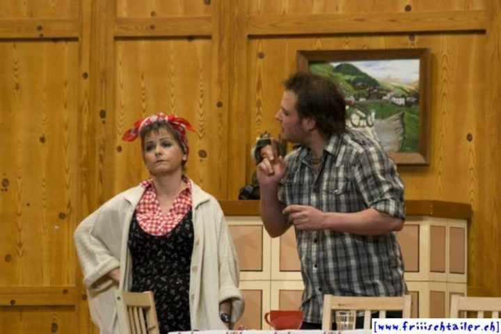 Toni Burri hat sich verschlafen. Er sollte eigentlich schon lange im Zug nach Bern sitzen, um dort an einer Sitzung des Bauernverbandes teilzunehmen. Seine Frau Theres möchte diesen Anlass dazu nutzen, ihren Mann für einige Zeit zu verlassen, um ihn so in die Knie zu zwingen, dass er sich von seinen vielen «Ämtli» und Vereinen trennt und sich mehr um sie kümmert. Als der Bruder Theres abholen will, Toni immer noch auf dem Hof ist, kommt es zu den ersten Komplikationen, denn Toni darf ja nichts Avon wissen, dass ihn seine Frau verlassen will. Dori, die Hausangestellte, eine mehr als «giftige» Person freut sich natürlich, nun das Zepter führen zu können. sie blüht geradezu auf um jeden zu tyrannisieren, der auf dem Hof anwesend ist. Der Nachbar, der die Situation dass Theres nicht mehr da ist, ausnutzen möchte, hat über Internet an zwei Damen geschrieben. Diese kommen nun am Wochenende auf den Hof, um ihren Märchenprinzen kennen zu lernen. Die zwei Internet-Damen haben aber die Rechnung ohne Dori gemacht. Da die beiden Damen nicht dem entsprechen, was sich der Nachbar vorgestellt hat, verleugnet er sich. Nun muss auch er unten durch, damit Dori den Schwindel nicht aufdeckt. Wer nicht nach ihrer Geige tanzt, wird heruntergehandelt wie ein «Schuelergoof». Ganz schlimm wir es, als Toni die Kellertreppe hinunterstürzt und auf fremde Hilfe angewiesen ist. Er ist heilfroh, dass Theres endlich wieder zurück kommt.