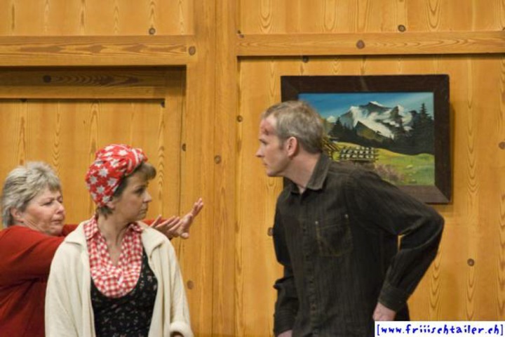 Toni Burri hat sich verschlafen. Er sollte eigentlich schon lange im Zug nach Bern sitzen, um dort an einer Sitzung des Bauernverbandes teilzunehmen. Seine Frau Theres möchte diesen Anlass dazu nutzen, ihren Mann für einige Zeit zu verlassen, um ihn so in die Knie zu zwingen, dass er sich von seinen vielen «Ämtli» und Vereinen trennt und sich mehr um sie kümmert. Als der Bruder Theres abholen will, Toni immer noch auf dem Hof ist, kommt es zu den ersten Komplikationen, denn Toni darf ja nichts Avon wissen, dass ihn seine Frau verlassen will. Dori, die Hausangestellte, eine mehr als «giftige» Person freut sich natürlich, nun das Zepter führen zu können. sie blüht geradezu auf um jeden zu tyrannisieren, der auf dem Hof anwesend ist. Der Nachbar, der die Situation dass Theres nicht mehr da ist, ausnutzen möchte, hat über Internet an zwei Damen geschrieben. Diese kommen nun am Wochenende auf den Hof, um ihren Märchenprinzen kennen zu lernen. Die zwei Internet-Damen haben aber die Rechnung ohne Dori gemacht. Da die beiden Damen nicht dem entsprechen, was sich der Nachbar vorgestellt hat, verleugnet er sich. Nun muss auch er unten durch, damit Dori den Schwindel nicht aufdeckt. Wer nicht nach ihrer Geige tanzt, wird heruntergehandelt wie ein «Schuelergoof». Ganz schlimm wir es, als Toni die Kellertreppe hinunterstürzt und auf fremde Hilfe angewiesen ist. Er ist heilfroh, dass Theres endlich wieder zurück kommt.