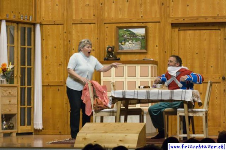 Toni Burri hat sich verschlafen. Er sollte eigentlich schon lange im Zug nach Bern sitzen, um dort an einer Sitzung des Bauernverbandes teilzunehmen. Seine Frau Theres möchte diesen Anlass dazu nutzen, ihren Mann für einige Zeit zu verlassen, um ihn so in die Knie zu zwingen, dass er sich von seinen vielen «Ämtli» und Vereinen trennt und sich mehr um sie kümmert. Als der Bruder Theres abholen will, Toni immer noch auf dem Hof ist, kommt es zu den ersten Komplikationen, denn Toni darf ja nichts Avon wissen, dass ihn seine Frau verlassen will. Dori, die Hausangestellte, eine mehr als «giftige» Person freut sich natürlich, nun das Zepter führen zu können. sie blüht geradezu auf um jeden zu tyrannisieren, der auf dem Hof anwesend ist. Der Nachbar, der die Situation dass Theres nicht mehr da ist, ausnutzen möchte, hat über Internet an zwei Damen geschrieben. Diese kommen nun am Wochenende auf den Hof, um ihren Märchenprinzen kennen zu lernen. Die zwei Internet-Damen haben aber die Rechnung ohne Dori gemacht. Da die beiden Damen nicht dem entsprechen, was sich der Nachbar vorgestellt hat, verleugnet er sich. Nun muss auch er unten durch, damit Dori den Schwindel nicht aufdeckt. Wer nicht nach ihrer Geige tanzt, wird heruntergehandelt wie ein «Schuelergoof». Ganz schlimm wir es, als Toni die Kellertreppe hinunterstürzt und auf fremde Hilfe angewiesen ist. Er ist heilfroh, dass Theres endlich wieder zurück kommt.