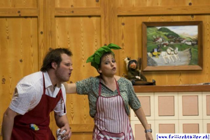 Toni Burri hat sich verschlafen. Er sollte eigentlich schon lange im Zug nach Bern sitzen, um dort an einer Sitzung des Bauernverbandes teilzunehmen. Seine Frau Theres möchte diesen Anlass dazu nutzen, ihren Mann für einige Zeit zu verlassen, um ihn so in die Knie zu zwingen, dass er sich von seinen vielen «Ämtli» und Vereinen trennt und sich mehr um sie kümmert. Als der Bruder Theres abholen will, Toni immer noch auf dem Hof ist, kommt es zu den ersten Komplikationen, denn Toni darf ja nichts Avon wissen, dass ihn seine Frau verlassen will. Dori, die Hausangestellte, eine mehr als «giftige» Person freut sich natürlich, nun das Zepter führen zu können. sie blüht geradezu auf um jeden zu tyrannisieren, der auf dem Hof anwesend ist. Der Nachbar, der die Situation dass Theres nicht mehr da ist, ausnutzen möchte, hat über Internet an zwei Damen geschrieben. Diese kommen nun am Wochenende auf den Hof, um ihren Märchenprinzen kennen zu lernen. Die zwei Internet-Damen haben aber die Rechnung ohne Dori gemacht. Da die beiden Damen nicht dem entsprechen, was sich der Nachbar vorgestellt hat, verleugnet er sich. Nun muss auch er unten durch, damit Dori den Schwindel nicht aufdeckt. Wer nicht nach ihrer Geige tanzt, wird heruntergehandelt wie ein «Schuelergoof». Ganz schlimm wir es, als Toni die Kellertreppe hinunterstürzt und auf fremde Hilfe angewiesen ist. Er ist heilfroh, dass Theres endlich wieder zurück kommt.