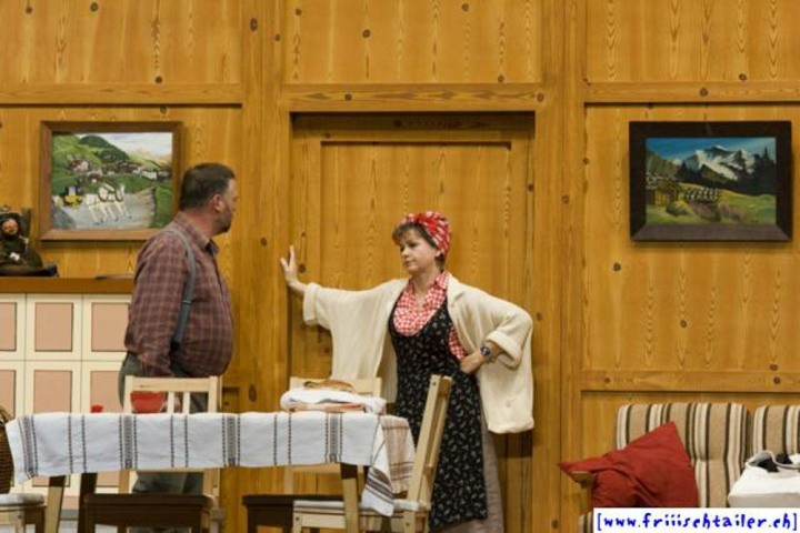 Toni Burri hat sich verschlafen. Er sollte eigentlich schon lange im Zug nach Bern sitzen, um dort an einer Sitzung des Bauernverbandes teilzunehmen. Seine Frau Theres möchte diesen Anlass dazu nutzen, ihren Mann für einige Zeit zu verlassen, um ihn so in die Knie zu zwingen, dass er sich von seinen vielen «Ämtli» und Vereinen trennt und sich mehr um sie kümmert. Als der Bruder Theres abholen will, Toni immer noch auf dem Hof ist, kommt es zu den ersten Komplikationen, denn Toni darf ja nichts Avon wissen, dass ihn seine Frau verlassen will. Dori, die Hausangestellte, eine mehr als «giftige» Person freut sich natürlich, nun das Zepter führen zu können. sie blüht geradezu auf um jeden zu tyrannisieren, der auf dem Hof anwesend ist. Der Nachbar, der die Situation dass Theres nicht mehr da ist, ausnutzen möchte, hat über Internet an zwei Damen geschrieben. Diese kommen nun am Wochenende auf den Hof, um ihren Märchenprinzen kennen zu lernen. Die zwei Internet-Damen haben aber die Rechnung ohne Dori gemacht. Da die beiden Damen nicht dem entsprechen, was sich der Nachbar vorgestellt hat, verleugnet er sich. Nun muss auch er unten durch, damit Dori den Schwindel nicht aufdeckt. Wer nicht nach ihrer Geige tanzt, wird heruntergehandelt wie ein «Schuelergoof». Ganz schlimm wir es, als Toni die Kellertreppe hinunterstürzt und auf fremde Hilfe angewiesen ist. Er ist heilfroh, dass Theres endlich wieder zurück kommt.