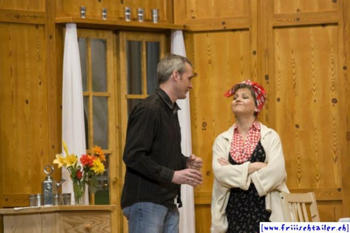 Toni Burri hat sich verschlafen. Er sollte eigentlich schon lange im Zug nach Bern sitzen, um dort an einer Sitzung des Bauernverbandes teilzunehmen. Seine Frau Theres möchte diesen Anlass dazu nutzen, ihren Mann für einige Zeit zu verlassen, um ihn so in die Knie zu zwingen, dass er sich von seinen vielen «Ämtli» und Vereinen trennt und sich mehr um sie kümmert. Als der Bruder Theres abholen will, Toni immer noch auf dem Hof ist, kommt es zu den ersten Komplikationen, denn Toni darf ja nichts Avon wissen, dass ihn seine Frau verlassen will. Dori, die Hausangestellte, eine mehr als «giftige» Person freut sich natürlich, nun das Zepter führen zu können. sie blüht geradezu auf um jeden zu tyrannisieren, der auf dem Hof anwesend ist. Der Nachbar, der die Situation dass Theres nicht mehr da ist, ausnutzen möchte, hat über Internet an zwei Damen geschrieben. Diese kommen nun am Wochenende auf den Hof, um ihren Märchenprinzen kennen zu lernen. Die zwei Internet-Damen haben aber die Rechnung ohne Dori gemacht. Da die beiden Damen nicht dem entsprechen, was sich der Nachbar vorgestellt hat, verleugnet er sich. Nun muss auch er unten durch, damit Dori den Schwindel nicht aufdeckt. Wer nicht nach ihrer Geige tanzt, wird heruntergehandelt wie ein «Schuelergoof». Ganz schlimm wir es, als Toni die Kellertreppe hinunterstürzt und auf fremde Hilfe angewiesen ist. Er ist heilfroh, dass Theres endlich wieder zurück kommt.