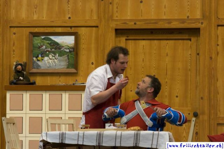Toni Burri hat sich verschlafen. Er sollte eigentlich schon lange im Zug nach Bern sitzen, um dort an einer Sitzung des Bauernverbandes teilzunehmen. Seine Frau Theres möchte diesen Anlass dazu nutzen, ihren Mann für einige Zeit zu verlassen, um ihn so in die Knie zu zwingen, dass er sich von seinen vielen «Ämtli» und Vereinen trennt und sich mehr um sie kümmert. Als der Bruder Theres abholen will, Toni immer noch auf dem Hof ist, kommt es zu den ersten Komplikationen, denn Toni darf ja nichts Avon wissen, dass ihn seine Frau verlassen will. Dori, die Hausangestellte, eine mehr als «giftige» Person freut sich natürlich, nun das Zepter führen zu können. sie blüht geradezu auf um jeden zu tyrannisieren, der auf dem Hof anwesend ist. Der Nachbar, der die Situation dass Theres nicht mehr da ist, ausnutzen möchte, hat über Internet an zwei Damen geschrieben. Diese kommen nun am Wochenende auf den Hof, um ihren Märchenprinzen kennen zu lernen. Die zwei Internet-Damen haben aber die Rechnung ohne Dori gemacht. Da die beiden Damen nicht dem entsprechen, was sich der Nachbar vorgestellt hat, verleugnet er sich. Nun muss auch er unten durch, damit Dori den Schwindel nicht aufdeckt. Wer nicht nach ihrer Geige tanzt, wird heruntergehandelt wie ein «Schuelergoof». Ganz schlimm wir es, als Toni die Kellertreppe hinunterstürzt und auf fremde Hilfe angewiesen ist. Er ist heilfroh, dass Theres endlich wieder zurück kommt.