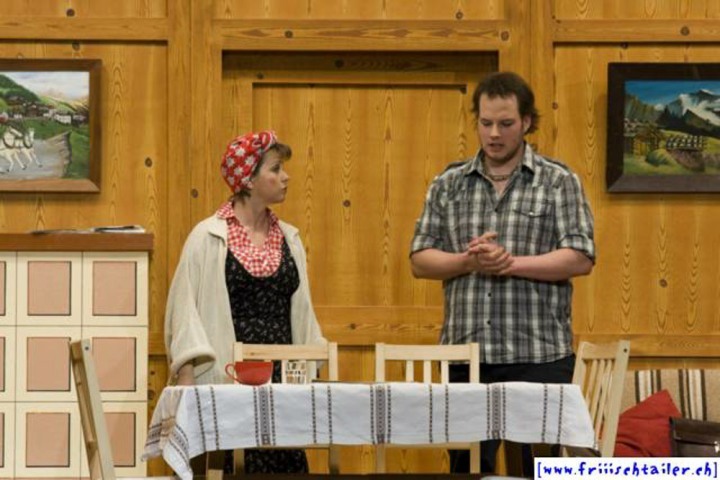 Toni Burri hat sich verschlafen. Er sollte eigentlich schon lange im Zug nach Bern sitzen, um dort an einer Sitzung des Bauernverbandes teilzunehmen. Seine Frau Theres möchte diesen Anlass dazu nutzen, ihren Mann für einige Zeit zu verlassen, um ihn so in die Knie zu zwingen, dass er sich von seinen vielen «Ämtli» und Vereinen trennt und sich mehr um sie kümmert. Als der Bruder Theres abholen will, Toni immer noch auf dem Hof ist, kommt es zu den ersten Komplikationen, denn Toni darf ja nichts Avon wissen, dass ihn seine Frau verlassen will. Dori, die Hausangestellte, eine mehr als «giftige» Person freut sich natürlich, nun das Zepter führen zu können. sie blüht geradezu auf um jeden zu tyrannisieren, der auf dem Hof anwesend ist. Der Nachbar, der die Situation dass Theres nicht mehr da ist, ausnutzen möchte, hat über Internet an zwei Damen geschrieben. Diese kommen nun am Wochenende auf den Hof, um ihren Märchenprinzen kennen zu lernen. Die zwei Internet-Damen haben aber die Rechnung ohne Dori gemacht. Da die beiden Damen nicht dem entsprechen, was sich der Nachbar vorgestellt hat, verleugnet er sich. Nun muss auch er unten durch, damit Dori den Schwindel nicht aufdeckt. Wer nicht nach ihrer Geige tanzt, wird heruntergehandelt wie ein «Schuelergoof». Ganz schlimm wir es, als Toni die Kellertreppe hinunterstürzt und auf fremde Hilfe angewiesen ist. Er ist heilfroh, dass Theres endlich wieder zurück kommt.