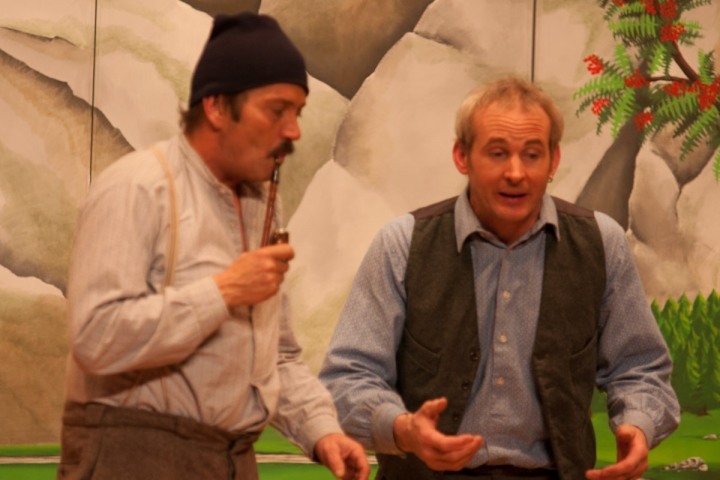 Nicht aber die Brüder Hans und Peter. Denn es stellt sich heraus, dass eben diese mit einer Auflage verbunden ist, welche den gemächlichen Alltag der beiden bedrohlich gefährdet. Die zwei Junggesellen bewirtschaften ihren Hof nämlich nicht gerade mit Liebe und Hingabe sondern gehen viel lieber ihren Hobbys nach. Peter legt leidenschaftlich gerne Karten und ist überzeugt davon, dass sie ihm die Zukunft voraussagen. Hans wird schon müde, wenn er jemandem beim Arbeiten bloss zusieht und ruht sich viel lieber auf seiner Bank aus. Das weibliche Geschlecht interessiert sie auch nicht besonders, und die drei Frauen auf dem Hof werden mehr geduldet als geschätzt. Doch mit dem Eintreffen von zwei «lieben Verwandten» ändert sich alles schlagartig. Die Haushälterin klagt offen über ihr Liebesleid, die Stall-Magd legt plötzlich Wert auf ihr Äusseres, die Haus-Magd versetzt ihren glühenden Verehrer in rasende Eifersucht und die «brüderliche Einigkeit» von Hans und Peter endet sogar in einer wilden Schlägerei. Die «lieben Verwandten» bringen so ziemlich Alles und Alle durcheinander, und nichts ist ………., STOP – mehr verraten wir nicht!