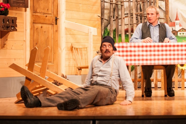 Nicht aber die Brüder Hans und Peter. Denn es stellt sich heraus, dass eben diese mit einer Auflage verbunden ist, welche den gemächlichen Alltag der beiden bedrohlich gefährdet. Die zwei Junggesellen bewirtschaften ihren Hof nämlich nicht gerade mit Liebe und Hingabe sondern gehen viel lieber ihren Hobbys nach. Peter legt leidenschaftlich gerne Karten und ist überzeugt davon, dass sie ihm die Zukunft voraussagen. Hans wird schon müde, wenn er jemandem beim Arbeiten bloss zusieht und ruht sich viel lieber auf seiner Bank aus. Das weibliche Geschlecht interessiert sie auch nicht besonders, und die drei Frauen auf dem Hof werden mehr geduldet als geschätzt. Doch mit dem Eintreffen von zwei «lieben Verwandten» ändert sich alles schlagartig. Die Haushälterin klagt offen über ihr Liebesleid, die Stall-Magd legt plötzlich Wert auf ihr Äusseres, die Haus-Magd versetzt ihren glühenden Verehrer in rasende Eifersucht und die «brüderliche Einigkeit» von Hans und Peter endet sogar in einer wilden Schlägerei. Die «lieben Verwandten» bringen so ziemlich Alles und Alle durcheinander, und nichts ist ………., STOP – mehr verraten wir nicht!