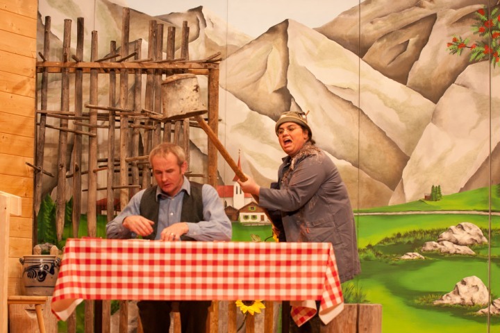 Nicht aber die Brüder Hans und Peter. Denn es stellt sich heraus, dass eben diese mit einer Auflage verbunden ist, welche den gemächlichen Alltag der beiden bedrohlich gefährdet. Die zwei Junggesellen bewirtschaften ihren Hof nämlich nicht gerade mit Liebe und Hingabe sondern gehen viel lieber ihren Hobbys nach. Peter legt leidenschaftlich gerne Karten und ist überzeugt davon, dass sie ihm die Zukunft voraussagen. Hans wird schon müde, wenn er jemandem beim Arbeiten bloss zusieht und ruht sich viel lieber auf seiner Bank aus. Das weibliche Geschlecht interessiert sie auch nicht besonders, und die drei Frauen auf dem Hof werden mehr geduldet als geschätzt. Doch mit dem Eintreffen von zwei «lieben Verwandten» ändert sich alles schlagartig. Die Haushälterin klagt offen über ihr Liebesleid, die Stall-Magd legt plötzlich Wert auf ihr Äusseres, die Haus-Magd versetzt ihren glühenden Verehrer in rasende Eifersucht und die «brüderliche Einigkeit» von Hans und Peter endet sogar in einer wilden Schlägerei. Die «lieben Verwandten» bringen so ziemlich Alles und Alle durcheinander, und nichts ist ………., STOP – mehr verraten wir nicht!