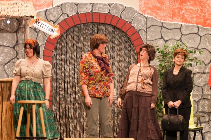 Ihr Plan wird jedoch zünftig durcheinander gebracht und von Ruhe und männerlos kann keine Rede sein. Denn just in dieser Pension versucht auch eine Partnervermittlerin ihren ersten Heiratskandidaten an die Frau zu bringen. Und der neue Kellner der geschäftstüchtigen Wirtin kann seinen Job nur behalten, wenn er sich den weiblichen Gästen in ganz besonderer Art und Weise widmet. Die Folgen seiner intensiven «Betreuung» sind feminine Hormonschübe und führen dazu, dass sich die drei Damen sogar gegenseitig «austricksen». Der Arzt mit seinem schrägen Humor und den etwas seltsamen Behandlungsmethoden ist auch nicht gerade das, was man von einem Humanmediziner erwarten darf.