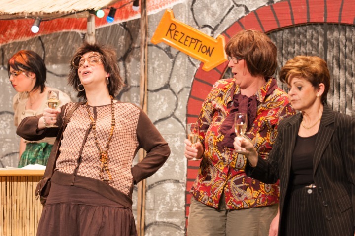 Ihr Plan wird jedoch zünftig durcheinander gebracht und von Ruhe und männerlos kann keine Rede sein. Denn just in dieser Pension versucht auch eine Partnervermittlerin ihren ersten Heiratskandidaten an die Frau zu bringen. Und der neue Kellner der geschäftstüchtigen Wirtin kann seinen Job nur behalten, wenn er sich den weiblichen Gästen in ganz besonderer Art und Weise widmet. Die Folgen seiner intensiven «Betreuung» sind feminine Hormonschübe und führen dazu, dass sich die drei Damen sogar gegenseitig «austricksen». Der Arzt mit seinem schrägen Humor und den etwas seltsamen Behandlungsmethoden ist auch nicht gerade das, was man von einem Humanmediziner erwarten darf.