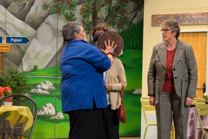 Als Cecile nach Hause kommt trifft sie fast der Schlag. Nachbarin Sylvia hat IHRE Idee geklaut!! Die beiden können sich nicht ausstehen und jede Menge «giftige Pfeile» fliegen über den Dorfplatz, wenn sie sich begegnen. Cecile macht Sylvias Mann Viktor gnadenlos zur Schnecke, weil er kurz vor der Kur IHREN Antrag abgewiesen hat. Sie erpresst ihn schamlos und um gesetzliche Vorschriften schert sie sich keinen Deut. Nicht einmal dem Pfarrer gelingt es, Cecile zur Vernunft zu bringen.